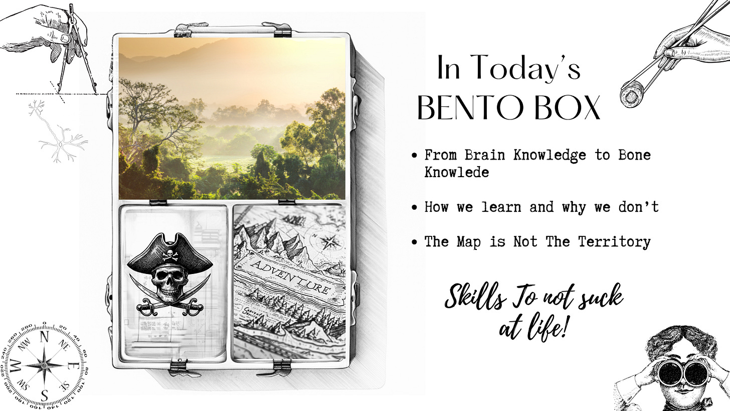We can consume all the information in the world, but it won't transfer from our brains to our bones until we actually practice it. Real learning happens when we need it - just-in-time, not just-in-case.